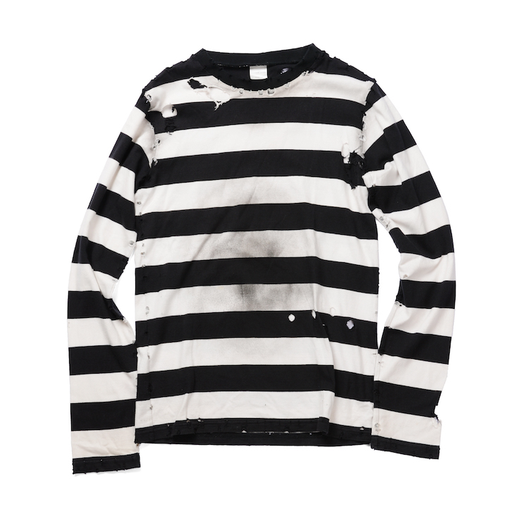 “ON STAGE _ NUMBER (N)INE #1”と題した今回は、Tシャツのみを集約させた《ナンバーナイン》の企画スペースが展開される。木村拓哉や中田英寿が着用していたブランド初期の希少な逸品から、昨今トラヴィス・スコットやエイサップ・ロッキーといった海外アーティストたちが着用したことで価格が高騰し、カルト的人気を誇るグラフィックものまで、様々なアイテムが並ぶ。