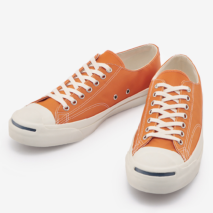 「ジャックパーセルECONYL」は、環境と社会に配慮したエコ素材やエシカル素材を使用するサステナブルなシリーズのコンバース イーシーラボより鮮やかなオレンジと、ブルーグレイの2カラーで展開される。